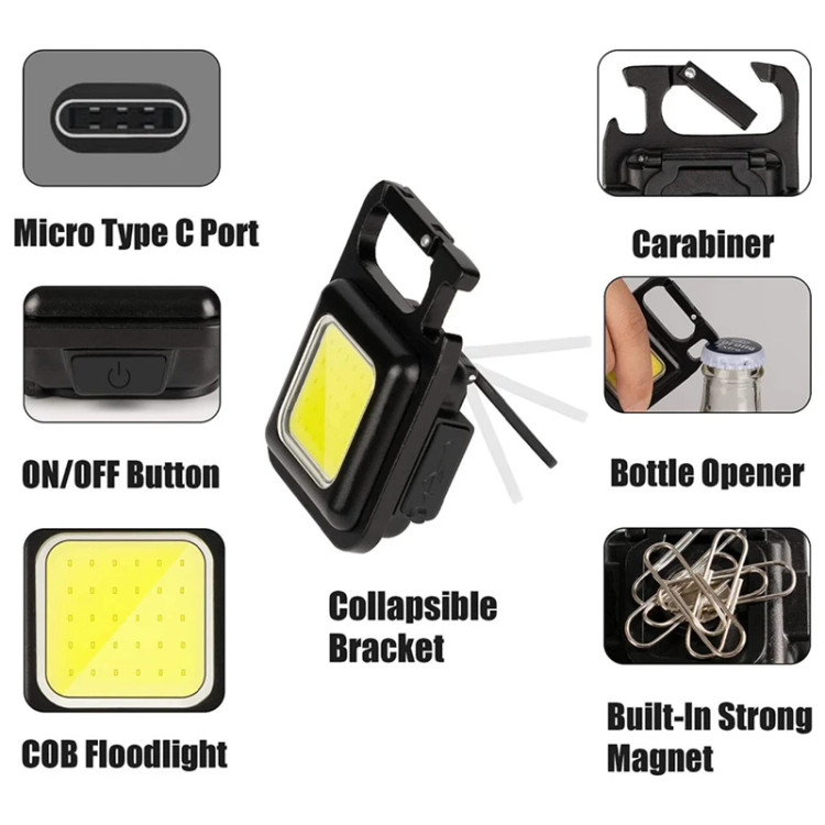 | سایر توضیحات | شدت نور بالا 3 حالت نوری (پرنور ، کم نور ، چشمک زن) دارای پایه تکیه گاه مگنت دار قابل استفاده به عنوان جا سوئیچی شارژ با کابل type_c شارژ دهی عالی استفاده به عنوان در باز کن نوشابه |